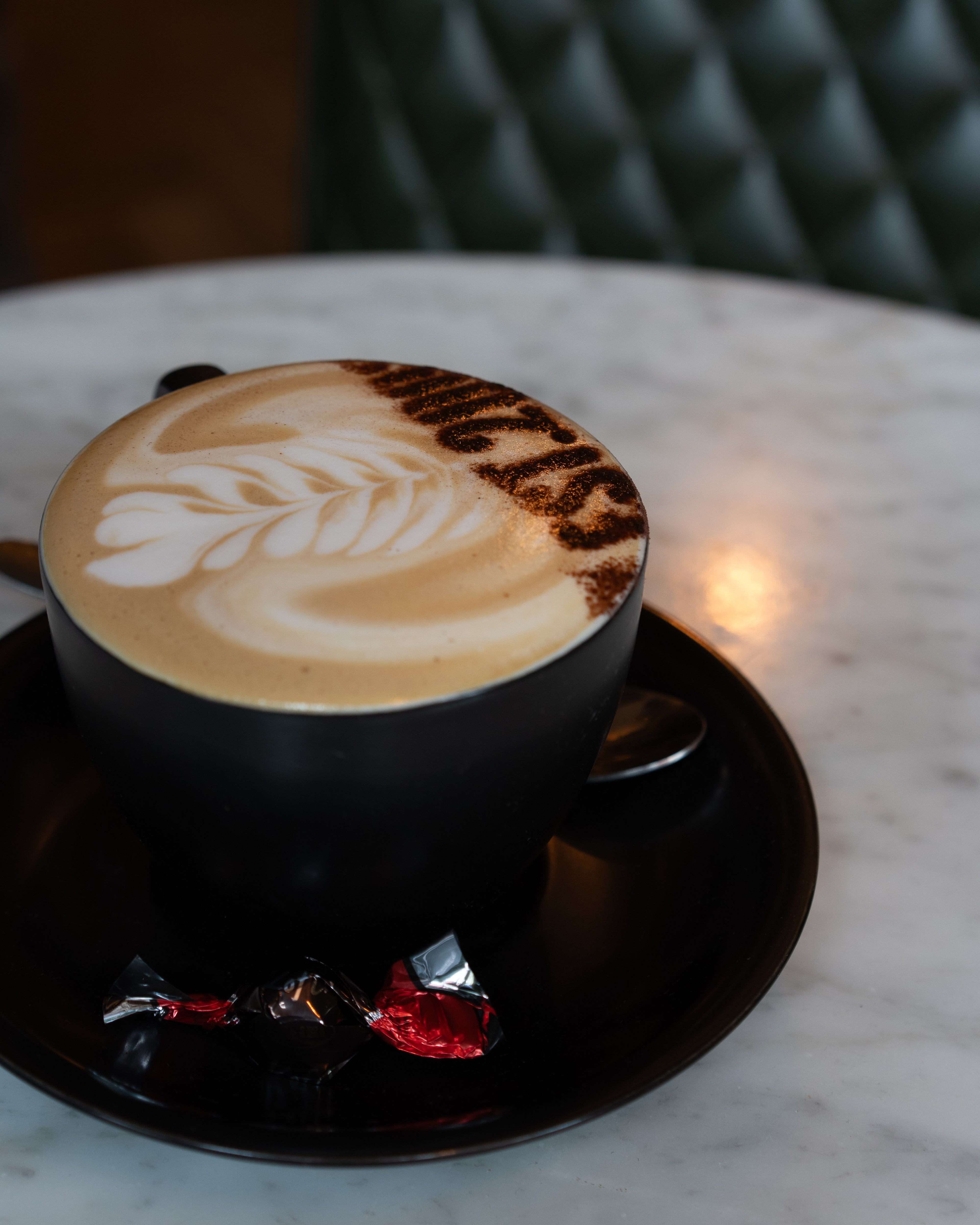 Latte has the perfect ratio of coffee to milk and a delicate creamy top.